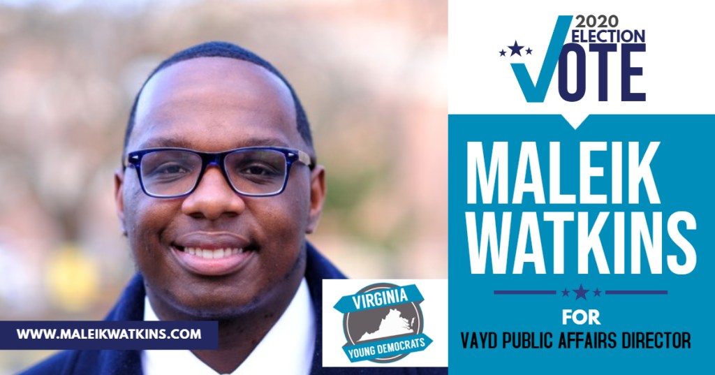 I am proud to announce my candidacy for the Virginia Young Democrats (VAYD) Public Affairs Director! I have been involved in VAYD since my freshmen year at Norfolk State University (NSU). After serving as Vice President of the NSU YDs during this past year, I am excited to take leadership to the next level for VAYD.